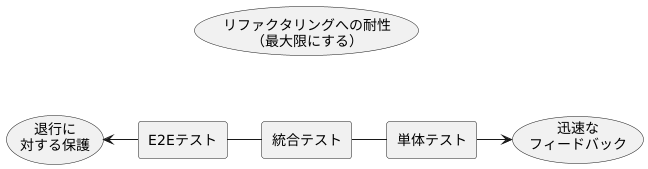 今回読んだ範囲では「良い単体テストを構成する4本の柱」について説明されていましたが、その中でも一貫して重要視されていたのが2本目の柱リファクタリングへの耐性です。リファクタリングへの耐性は常に最大限にしつつ、同時に成り立たない退行に対する保護と迅速なフィードバックについては、テストの種類ごとにどちらを優先するか決めることが推奨されています(p.125)。