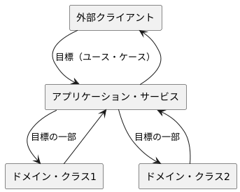 - アプリケーション・サービスに対するテスト・ケースはビジネスにおける全体的なユースケースがいかに実行されるのかを検証するのに対し、ドメイン・クラスに対するテスト・ケースは同じユース・ケースが完了に至るまでの一部を検証することになる